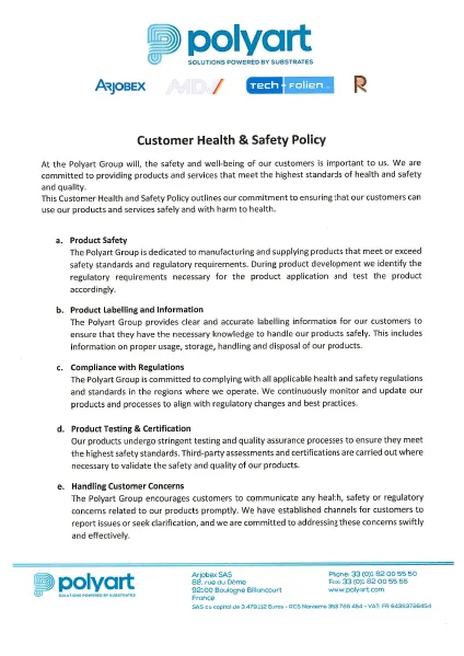 Customer Health and Safety Policy