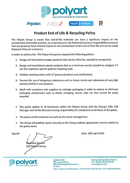 Product End of Life & Recycling Policy